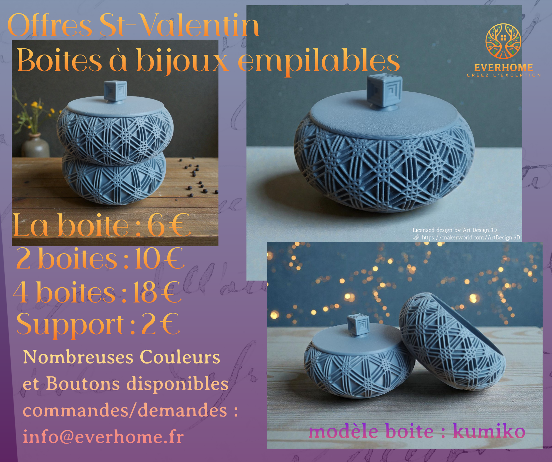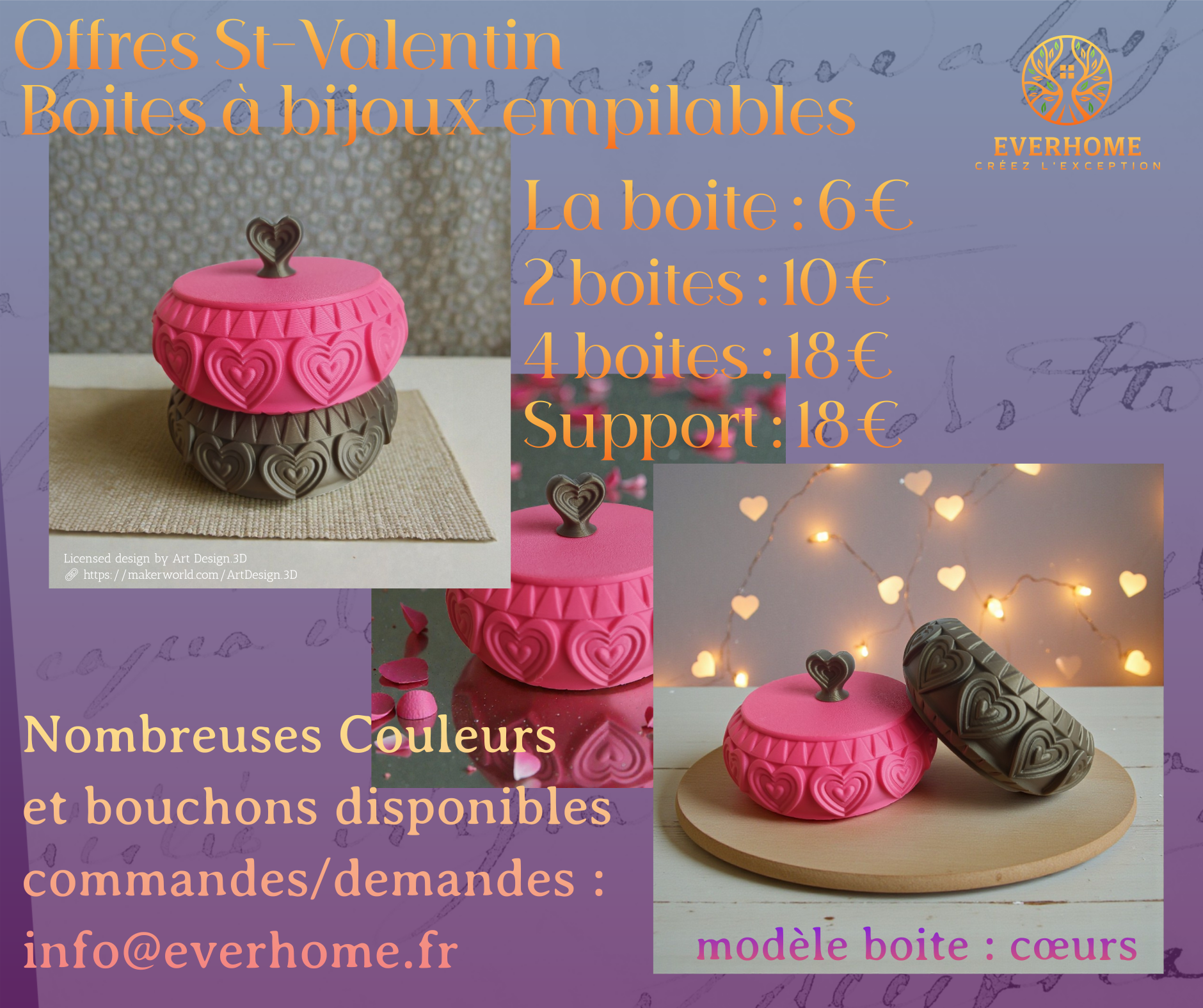 Offres de St-Valentin : choisissez le(s) modèle(s), les couleurs et les options et faites nous votre demande ici
