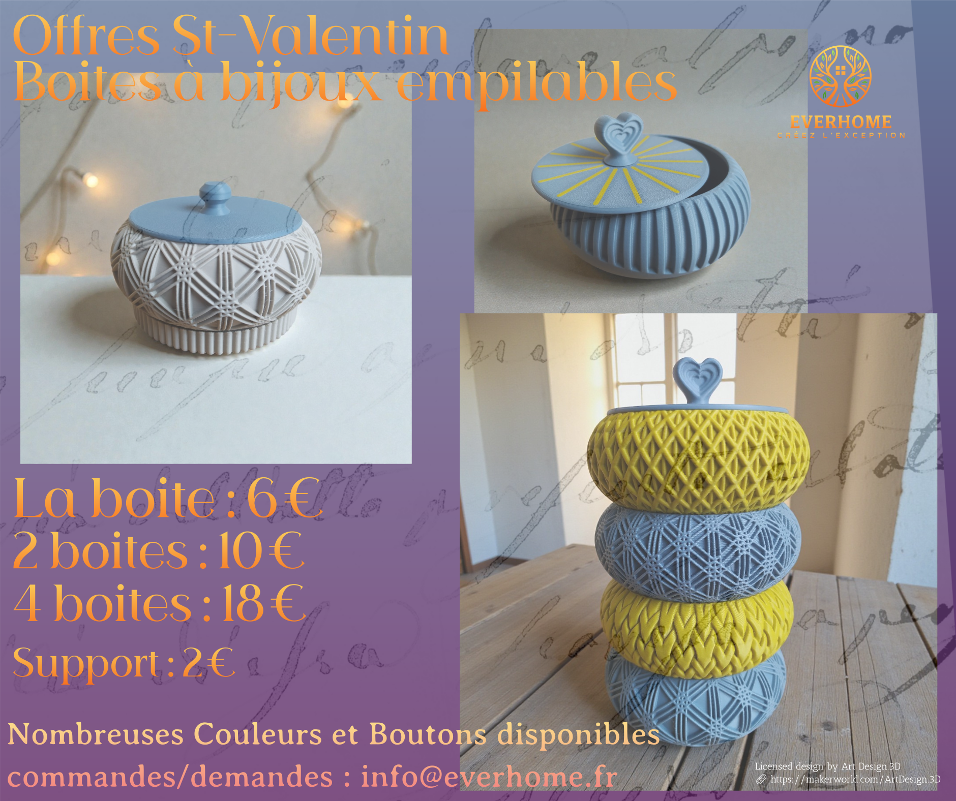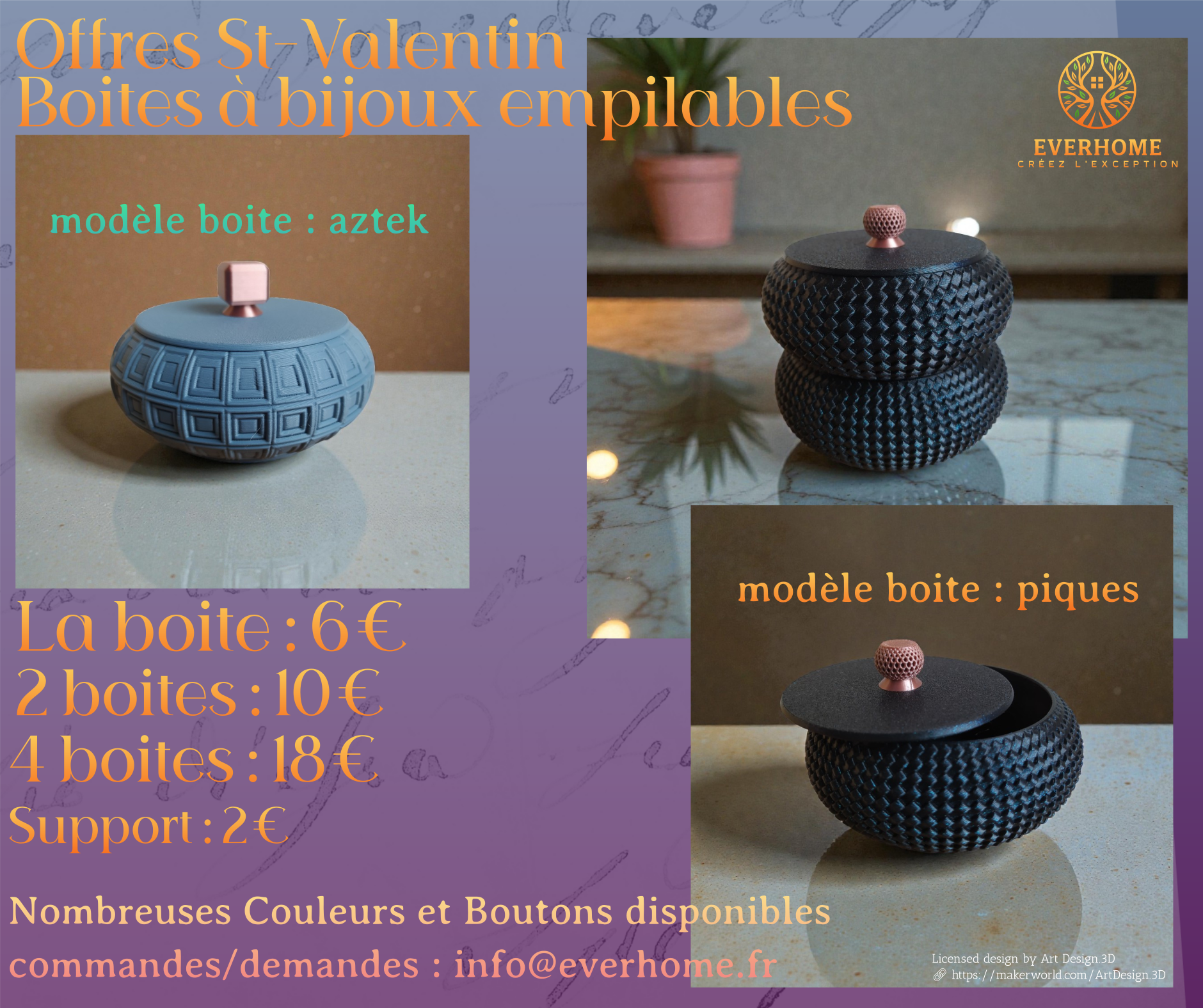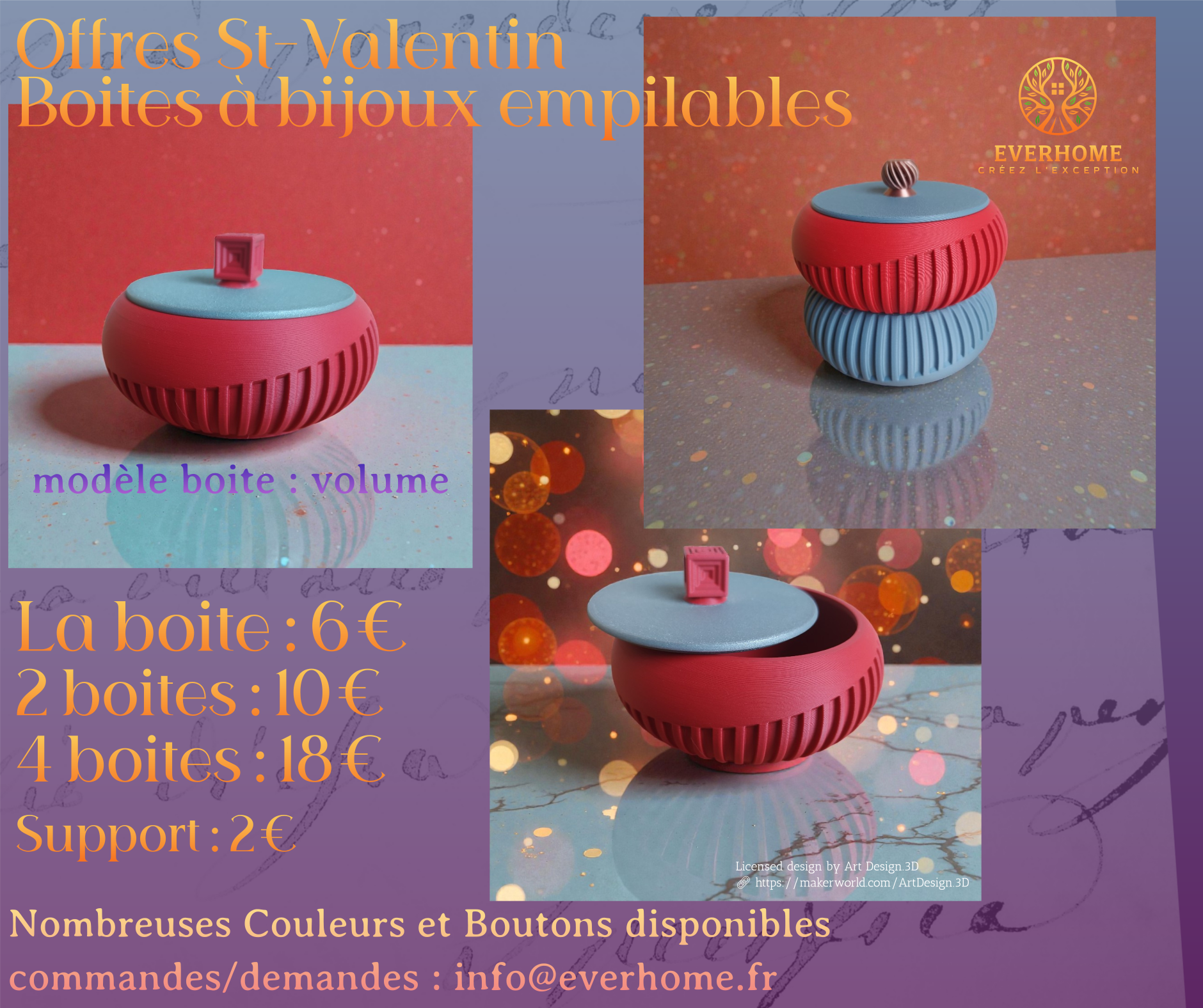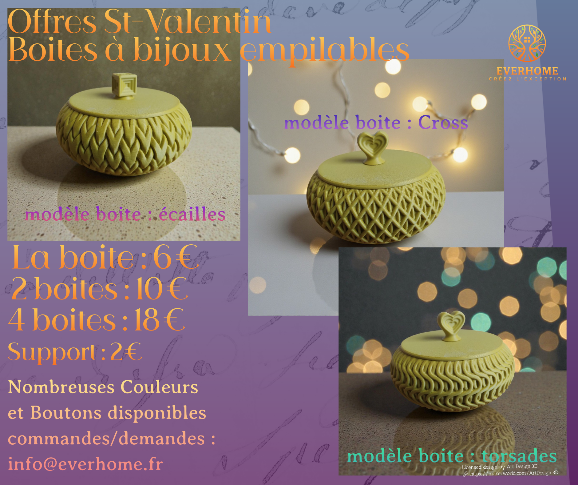 Offres de St-Valentin : choisissez le(s) modèle(s), les couleurs et les options et faites nous votre demande ici